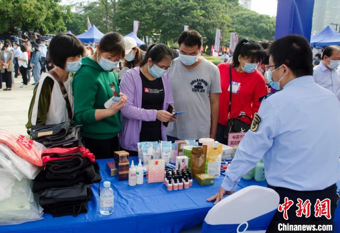 活動(dòng)現(xiàn)場(chǎng)展示的侵權(quán)假冒偽劣商品吸引民眾關(guān)注
