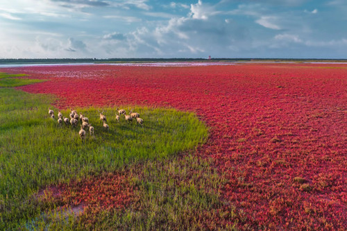 連片豐茂的水草簇?fù)碓趶V闊灘涂上,落日流光灑下,將灘涂映照成華美錦緞。潮起潮落間,魚歡蝦躍、水鳥飛翔……位于鹽城東臺的條子泥濕地,每天都是一幅如詩畫卷,向世界展示著濕地生態(tài)的非凡魅力,彰顯著我國濕地保護(hù)的顯著成效。