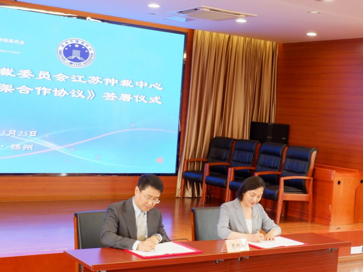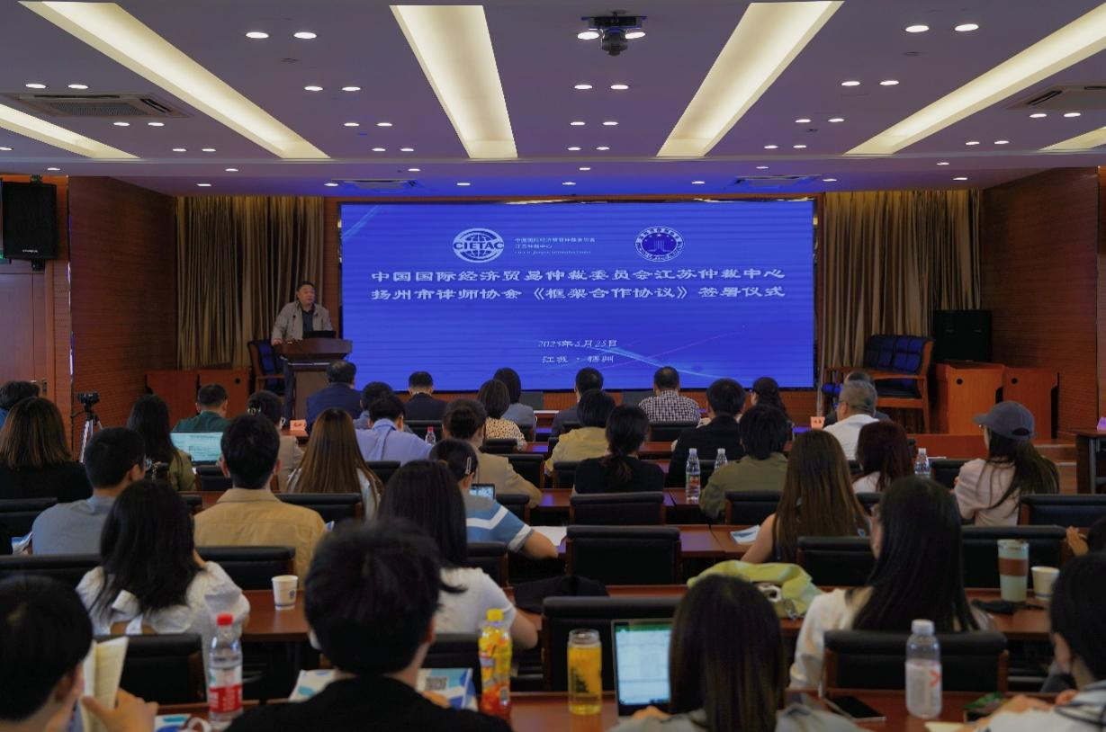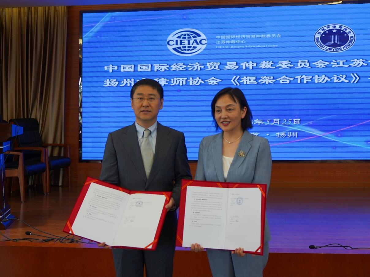 2023年5月25日下午,中國國際經(jīng)濟貿(mào)易仲裁委員會江蘇仲裁中心(以下簡稱“貿(mào)仲江蘇中心”)與揚州市律師協(xié)會(以下簡稱“揚州律協(xié)”)在揚州簽署《框架合作協(xié)議》。合作協(xié)議簽署儀式由揚州律協(xié)仲裁法律業(yè)務(wù)委員會主任包振宇主持,貿(mào)仲仲裁院副院長兼貿(mào)仲江蘇中心秘書長谷巖、揚州律協(xié)副會長蔣敏代表雙方在合作協(xié)議上簽字。簽約儀式后,雙方舉辦了“商事爭議多元化解決的實踐與展望”專題研討會。