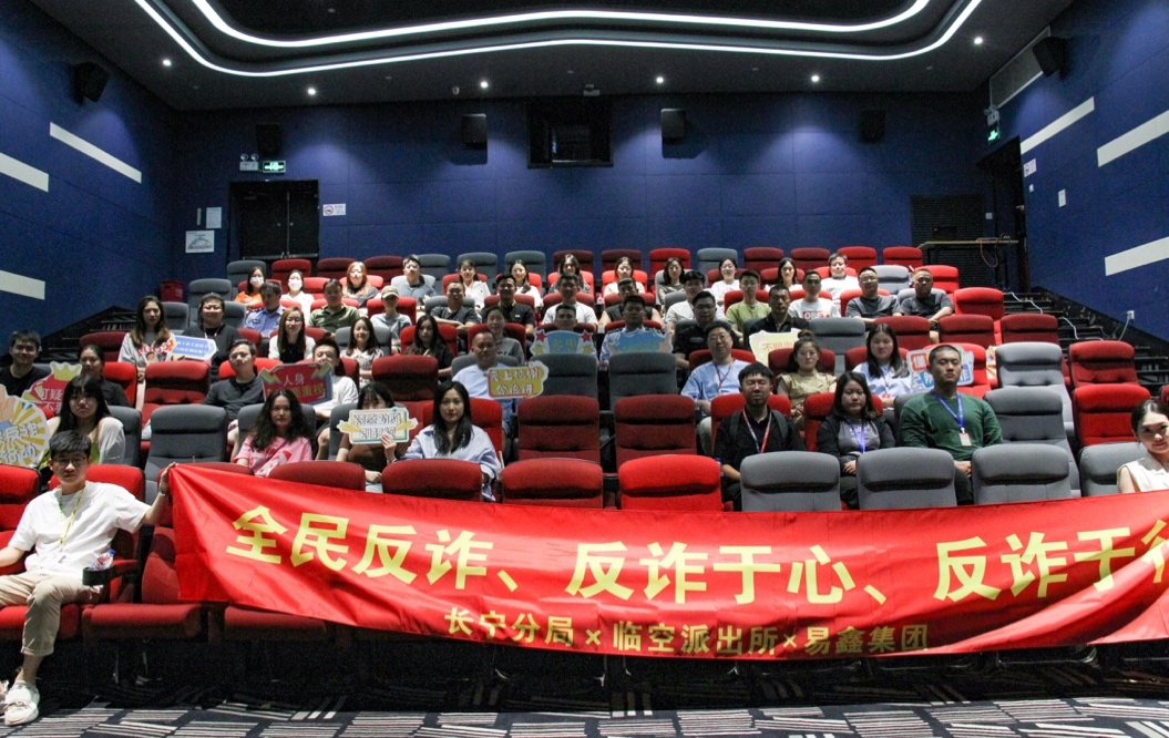 活動中,易鑫集團員工代表和公安干警等一同觀看了最新上映的反詐電影《孤注一擲》,片中生動、逼真的案例演繹,讓觀影人員了解了境外網(wǎng)絡(luò)詐騙的產(chǎn)業(yè)鏈運作,深刻感受到遭遇詐騙的殘酷后果。