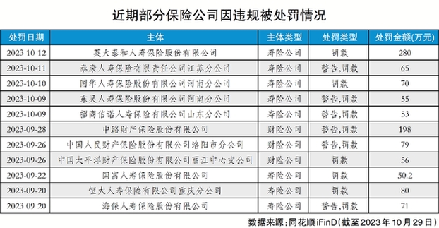 記者注意到,這是保險(xiǎn)業(yè)繼中路財(cái)產(chǎn)保險(xiǎn)股份有限公司(簡(jiǎn)稱“中路財(cái)險(xiǎn)”)收到198萬元“罰單”后又一張“百萬級(jí)”罰單。同花順數(shù)據(jù)統(tǒng)計(jì)顯示,今年下半年以來,各類主管機(jī)關(guān)對(duì)保險(xiǎn)公司的違規(guī)行為作出約500次處罰,合計(jì)處罰金額超億元。業(yè)內(nèi)專家表示,監(jiān)管部門從重處罰一些存在違規(guī)違法問題的經(jīng)營(yíng)機(jī)構(gòu),屬于常規(guī)動(dòng)作,有助于進(jìn)一步規(guī)范保險(xiǎn)市場(chǎng)秩序、防范金融風(fēng)險(xiǎn)、保護(hù)消費(fèi)者權(quán)益等。