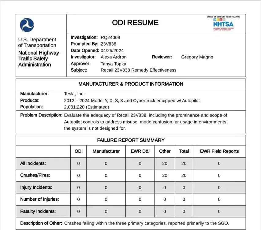 據(jù)悉,監(jiān)管機構(gòu)調(diào)查的主要原因是,在車輛被召回并進行了軟件更新后又發(fā)生了多起碰撞事故,并且該管理局初步的測試結(jié)果也引發(fā)了擔憂。