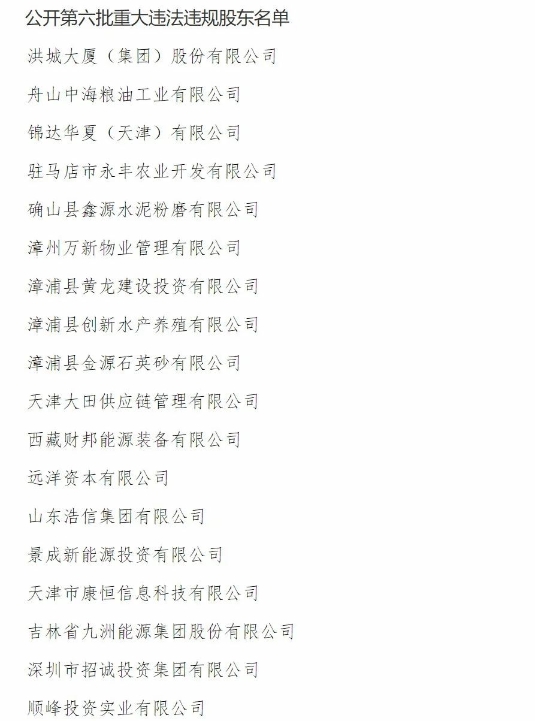 6月14日,國家金融監(jiān)督管理總局向社會公開第六批共18家重大違法違規(guī)股東。