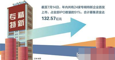 今年以來,資本市場持續(xù)健全服務(wù)科技創(chuàng)新的相關(guān)機制,尤其是在支持專精特新企業(yè)融資方面成效顯著。據(jù)Wind資訊數(shù)據(jù)統(tǒng)計,截至7月14日,年內(nèi)共有24家專精特新企業(yè)首發(fā)上市,占全部IPO數(shù)量的51%,合計募集資金達(dá)132.57億元。