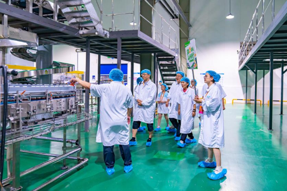 在生產(chǎn)車間,各類先進(jìn)生產(chǎn)線有序運(yùn)轉(zhuǎn),展現(xiàn)出現(xiàn)代化飲品生產(chǎn)的嚴(yán)謹(jǐn)與高效。工作人員詳細(xì)介紹了“潤家”飲料從原料生產(chǎn)、運(yùn)輸,到配方研發(fā)、灌裝生產(chǎn)的全流程品控環(huán)節(jié)。從優(yōu)質(zhì)原料的嚴(yán)格篩選,到運(yùn)輸過程中的保鮮措施,再到配方研發(fā)時(shí)對(duì)健康元素的精準(zhǔn)把控,以及超高溫滅菌黑科技、全程無菌灌裝、多道質(zhì)檢程序,每一個(gè)細(xì)節(jié)都體現(xiàn)著對(duì)飲品品質(zhì)的極致追求。