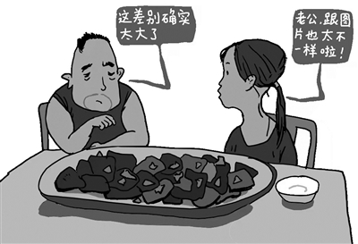 紅彤彤的烤饅頭夾龍蝦、焦褐色的炸肥腸、金燦燦的菠蘿飯……看到這些美食圖片,來自天津市河?xùn)|區(qū)的鄒楷不但沒有“打卡”的欲望,反而有點(diǎn)反胃,因?yàn)楦唢柡投鹊纳首屖澄锟瓷先ヌ倭?。和鄒楷一樣,對(duì)美食宣傳過度現(xiàn)象不理解的人不在少數(shù)。近日在多個(gè)美食推薦平臺(tái)上,有不少消費(fèi)者吐槽,其被宣傳圖片或者文案吸引,結(jié)果吃到的食物與圖文嚴(yán)重不符。(9月20日《法治日?qǐng)?bào)》)