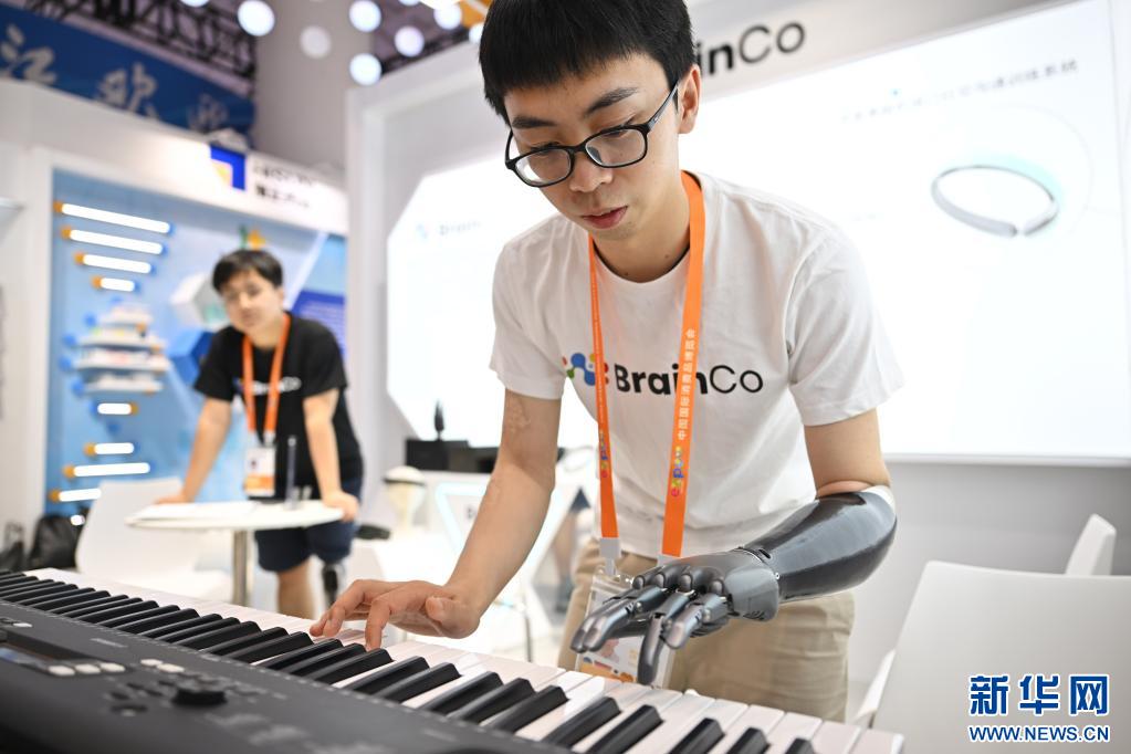 4月10日,參展商在消博會(huì)浙江展臺(tái)展示一款智能仿生手。當(dāng)日,第三屆中國國際消費(fèi)品博覽會(huì)在海南??陂_幕。本屆消博會(huì)以“共享開放機(jī)遇、共創(chuàng)美好生活”為主題,將助力消費(fèi)恢復(fù)和升級,為各國企業(yè)共享中國市場提供機(jī)遇。新華社記者 郭程攝