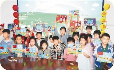 圖為孩子們?cè)谡故举N畫。古國(guó)凡、魏二濤攝影報(bào)道