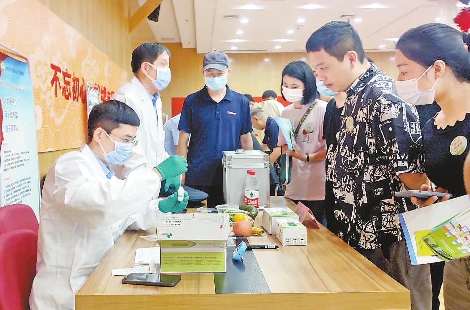 近日,北京市東城區(qū)王府井地區(qū)食品安全示范樓宇創(chuàng)建啟動(dòng)儀式在王府井百貨大樓舉行。此次示范樓宇創(chuàng)建將采取政府主導(dǎo)和社會(huì)監(jiān)督相結(jié)合、部門(mén)監(jiān)管與業(yè)主自律相促進(jìn)的辦法,充分發(fā)揮優(yōu)秀典范的帶動(dòng)作用,全面提高食品經(jīng)營(yíng)者主體責(zé)任意識(shí)、誠(chéng)信意識(shí)和食品安全管理水平。圖為啟動(dòng)儀式上工作人員對(duì)社會(huì)關(guān)注度較高的食品進(jìn)行現(xiàn)場(chǎng)檢測(cè)。(董芳忠)