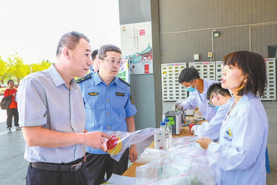 “您好,我們可以自己選擇檢測(cè)食品嗎?”6月21日,在太原學(xué)院餐廳門前,很多大學(xué)生圍在山西綜改區(qū)市場(chǎng)監(jiān)管局設(shè)立的“你點(diǎn)我檢”桌前向工作人員提問。該局食品監(jiān)管科副科長吳煒耐心給學(xué)生們講解:“沒問題,咱們掃碼后可以根據(jù)需求選擇,我們會(huì)根據(jù)大家的選擇進(jìn)行相關(guān)檢測(cè)?!睅孜粚W(xué)生在吳煒的引導(dǎo)下進(jìn)行了操作,同時(shí)觀看了食品安全快檢流程?!拔覀兊牟妥谰涂磕銈儽O(jiān)督,必須給你們點(diǎn)贊!”幾位同學(xué)對(duì)市場(chǎng)監(jiān)管部門的工作表示贊揚(yáng)。