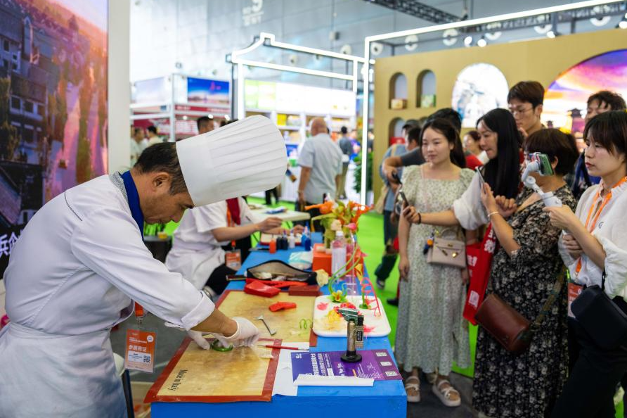 9月15日,在長沙國際會(huì)展中心,參展商在展示廚藝。