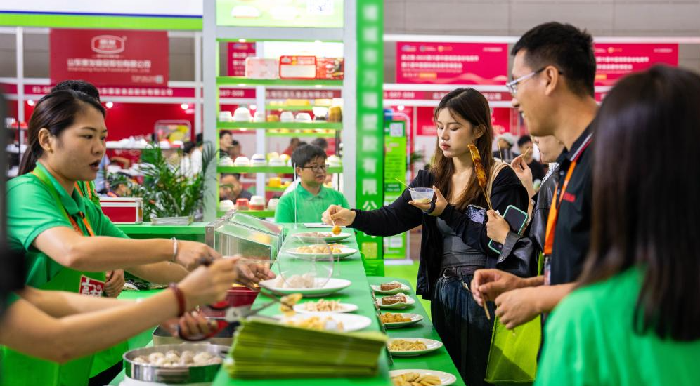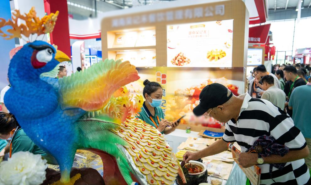 9月15日,在長沙國際會(huì)展中心,觀眾在品嘗小吃。