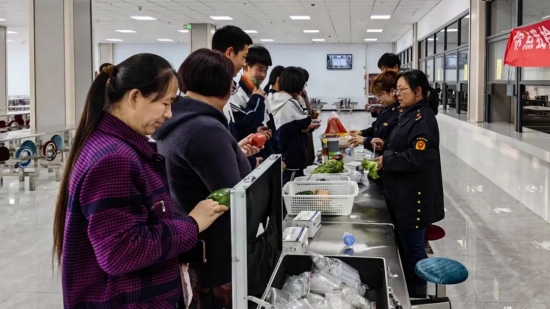 活動現(xiàn)場,工作人員正在對蔬菜進行檢測。張曉杰攝