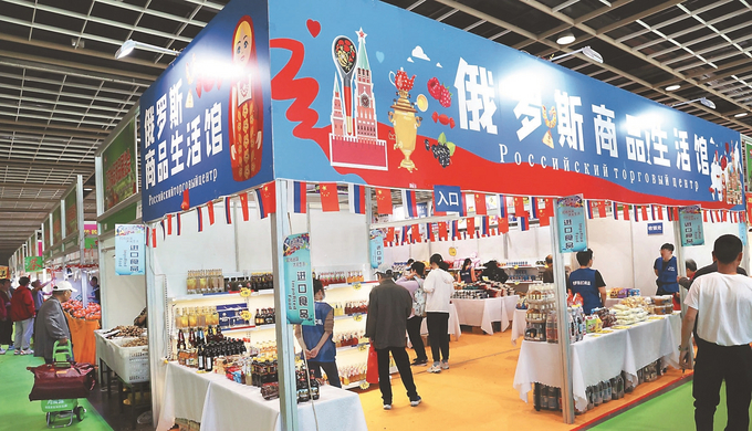 4月27日,第十八屆江蘇春季食品商品展覽會在南京國際展覽中心舉行。展會匯聚全國各地美食,涵蓋糧油、飲料、干果炒貨等,還開設(shè)了進口食品區(qū)。圖為市民在“俄羅斯商品生活館”選購。記者 宋寧 攝