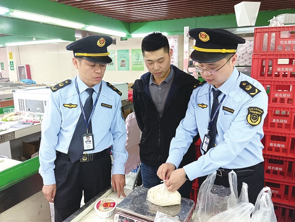 圖為該局執(zhí)法人員在一家超市對鮮面條進(jìn)行抽樣。孫建新 金聰 文/攝