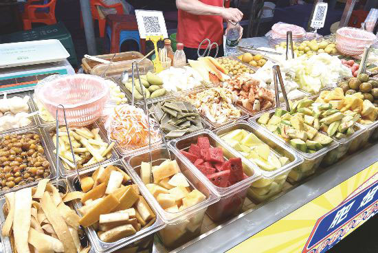 南寧平西夜市酸嘢品種豐富,色澤鮮艷