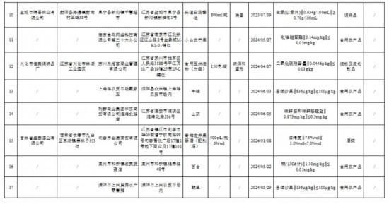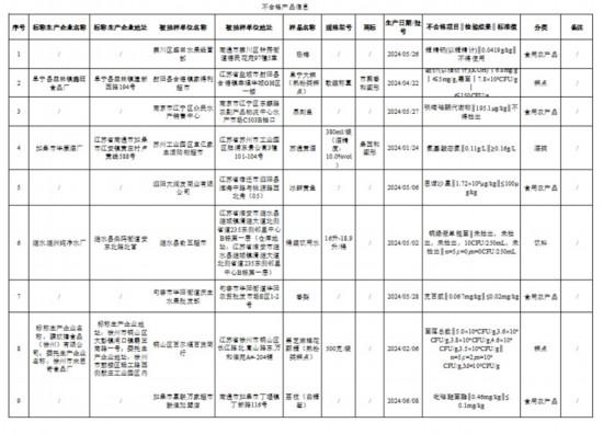 近期,江蘇省市場監(jiān)督管理局組織食品安全抽檢,抽取淀粉及淀粉制品、炒貨食品及堅果制品、糕點、可可及焙烤咖啡產(chǎn)品、速凍食品、飲料、食用農(nóng)產(chǎn)品、水產(chǎn)制品、糧食加工品、餐飲食品、乳制品、肉制品、食用油、油脂及其制品、調(diào)味品和酒類等15大類食品707批次樣品,檢出其中淀粉及淀粉制品、調(diào)味品、糕點、酒類、食用農(nóng)產(chǎn)品和飲料等6大類食品17批次樣品不合格。