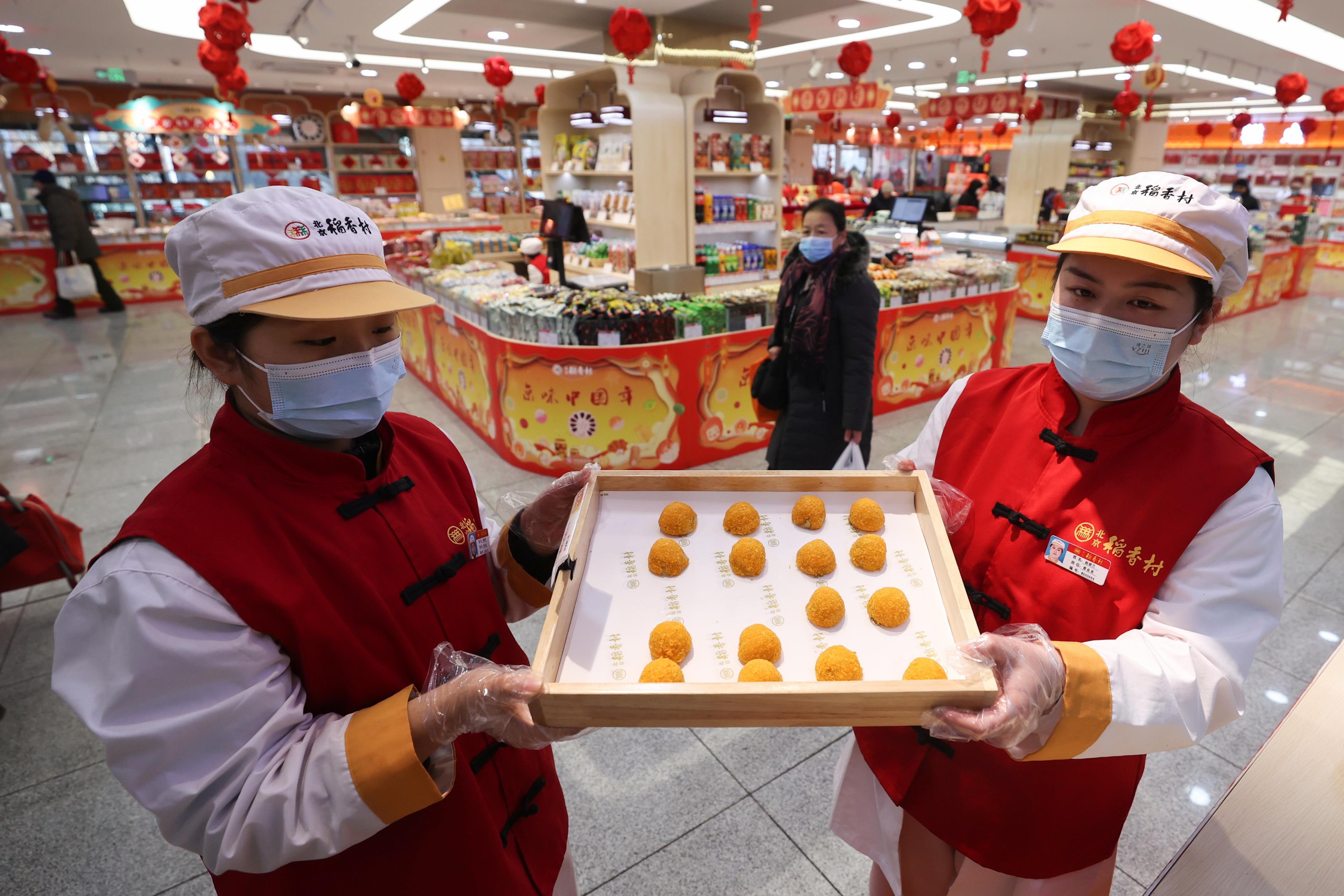 湯圓又有新吃法。近日,北京一家中華老字號糕點店門口,消費者在其元宵湯圓柜臺前排起了長隊。記者了解到,該店在原有口味的基礎上,又特別推出了現(xiàn)烤黃米湯圓,其獨特的風味吸引眾多顧客前來嘗鮮。(董芳忠)