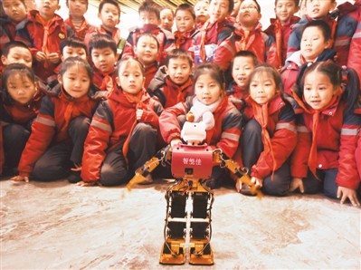 2020年12月18日,江西省撫州市資溪縣第三小學(xué)學(xué)生在觀看機器人表演。 吳志貴攝(人民視覺) |