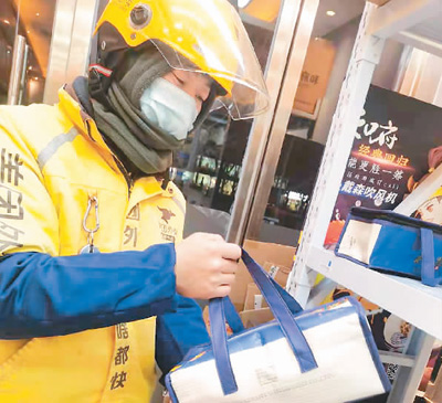 網(wǎng)約配送員游國棟正在取餐?! 〔稍L對象供圖 |