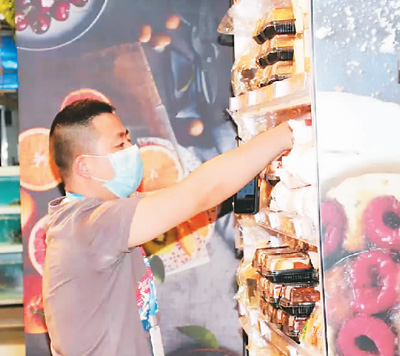 連鎖經(jīng)營管理師馮亞光在整理商品陳列?! 『旭R鮮生供圖 |