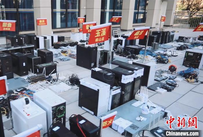 圖為警方繳獲的智能插座等智能遠程監(jiān)控設備。云南省公安廳供圖