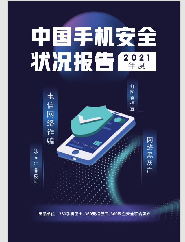 《報(bào)告》顯示,2021年全年,360手機(jī)衛(wèi)士累計(jì)攔截惡意程序攻擊約82.4億次,攔截釣魚網(wǎng)站攻擊約933.4億次。手機(jī)用戶僅依靠社會(huì)經(jīng)驗(yàn)和常識(shí)已無法甄別騙局,數(shù)字技術(shù)在詐騙預(yù)警和黑灰產(chǎn)反制中發(fā)揮越來越重要的作用。該報(bào)告由360手機(jī)衛(wèi)士聯(lián)合360政企安全和天樞智庫共同發(fā)布。