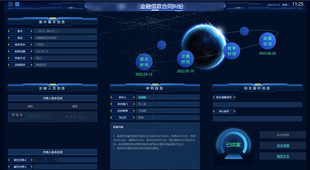 案件數(shù)字畫像整合全院的審判、執(zhí)行、人員、流程等數(shù)據(jù),對結(jié)案率、服判息訴率、改判發(fā)回瑕疵率等核心質(zhì)效指標(biāo)進(jìn)行監(jiān)控和預(yù)警,對在線庭審視頻實(shí)現(xiàn)一鍵點(diǎn)擊播放,對異步審理對話實(shí)現(xiàn)一鍵點(diǎn)擊瀏覽,對結(jié)案文書實(shí)現(xiàn)一鍵點(diǎn)擊查看,全面實(shí)現(xiàn)案件監(jiān)督管理全程網(wǎng)上運(yùn)行、全程留痕,智能監(jiān)測審判過程和結(jié)果偏離態(tài)勢,推動審判監(jiān)督管理由盯人盯案、層層審批,向全院、全員、全過程的實(shí)時動態(tài)監(jiān)管轉(zhuǎn)變。