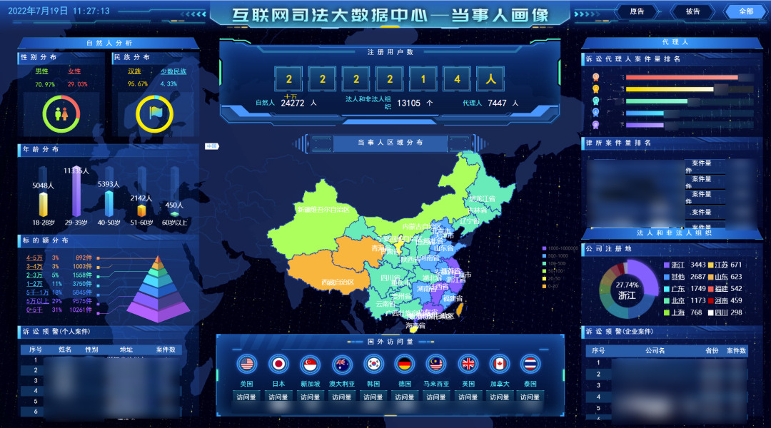 當(dāng)事人數(shù)字畫像從身份信息、案件構(gòu)成、訴訟能力、訴訟地位、行為特征等維度對當(dāng)事人進(jìn)行數(shù)字化重構(gòu),對當(dāng)事人訴訟習(xí)慣和常見問題進(jìn)行梳理和整合,對重點(diǎn)當(dāng)事人進(jìn)行識別和監(jiān)測,并將其反饋到業(yè)務(wù)系統(tǒng)的升級和優(yōu)化之中,切實(shí)以當(dāng)事人需求為導(dǎo)向打造出“一看就懂、一用就會”的網(wǎng)上訴訟平臺。同時對涉訴較多的平臺、頭部企業(yè)等通過綜合案件主訴與被訴、案件類型、訴訟結(jié)果、訴請與抗辯內(nèi)容等全面分析其涉網(wǎng)糾紛情況和特征,幫助其完善合法合規(guī)、落實(shí)大政方針、打造良好營商環(huán)境,進(jìn)一步強(qiáng)化互聯(lián)網(wǎng)空間治理。