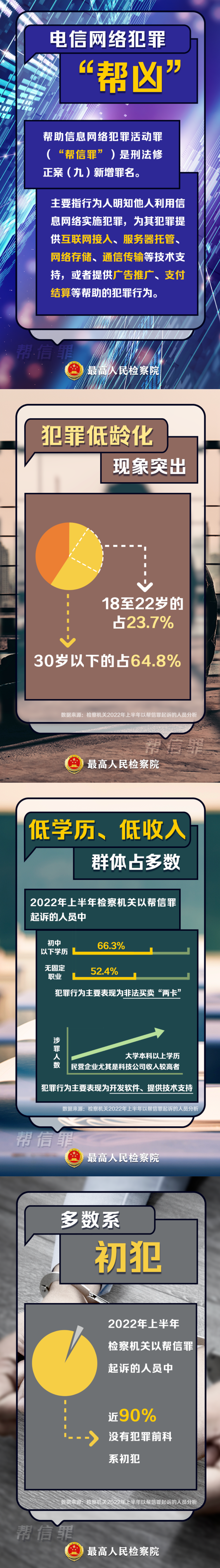 幫信罪是電信網(wǎng)絡(luò)犯罪的重要“幫兇”,目前已成為各類刑事犯罪中起訴人數(shù)排名第三的罪名。近日,最高檢披露的一組辦案數(shù)據(jù)顯示,2022年上半年檢察機關(guān)起訴幫信犯罪6.4萬人,有哪些問題值得關(guān)注?