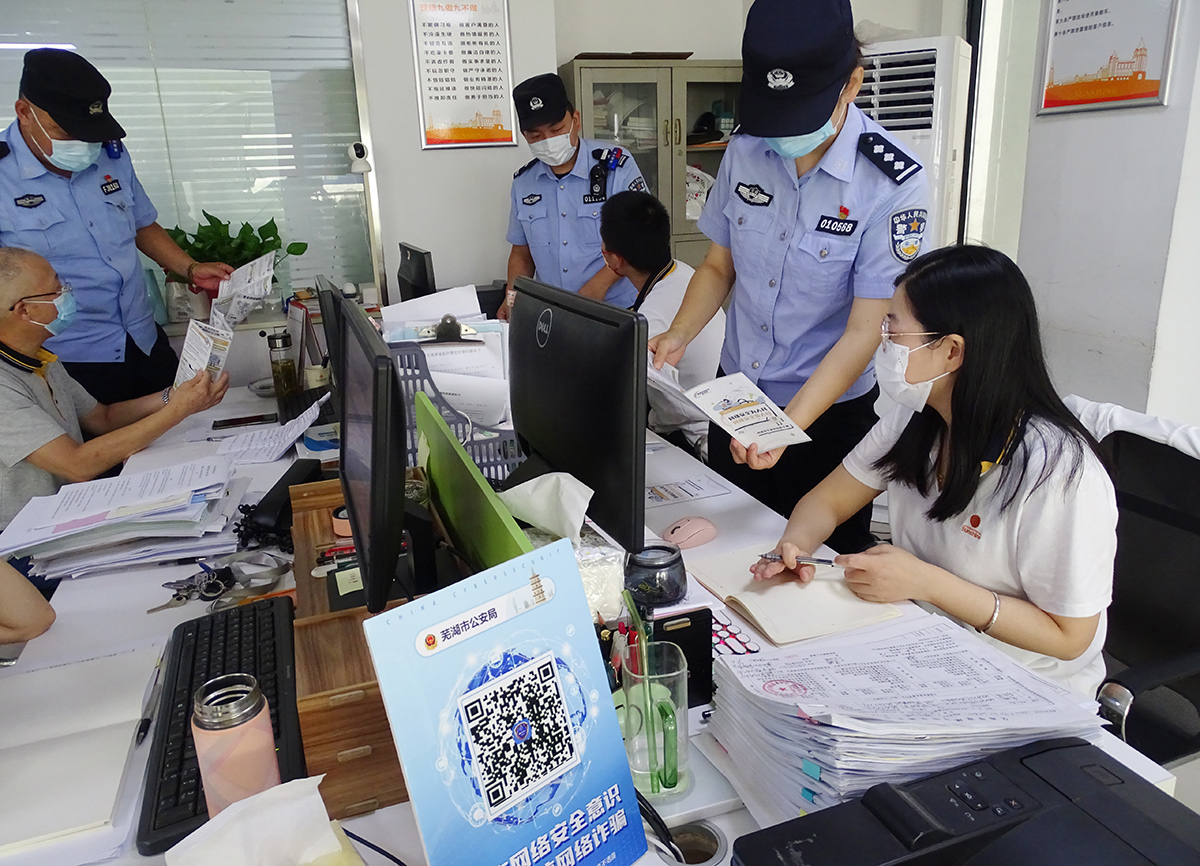 9月8日,國家網(wǎng)絡(luò)安全宣傳周期間,安徽省蕪湖市公安局鏡湖分局濱江派出所組織開展“網(wǎng)絡(luò)安全宣傳進(jìn)百家”活動。民警走進(jìn)轄區(qū)企業(yè),向企業(yè)員工宣傳網(wǎng)絡(luò)安全知識,提高大家安全防范意識。