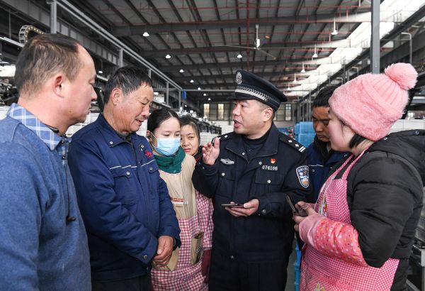 1月5日,安徽省馬鞍山市含山縣公安局花山派出所組織民警走進轄區(qū)企業(yè)開展反電詐宣傳活動。