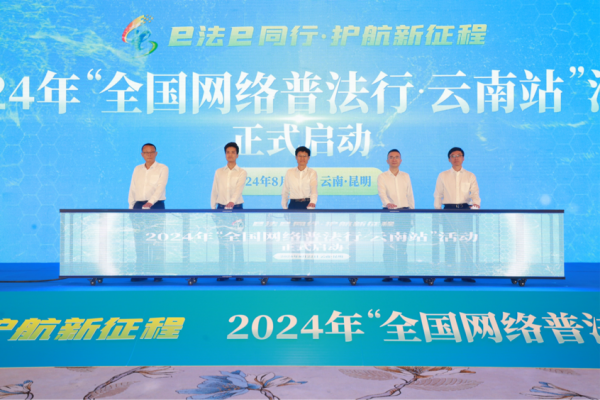 e法e同行?護航新征程。8月22日,2024年“全國網(wǎng)絡普法行·云南站”活動在云南昆明正式啟動。
