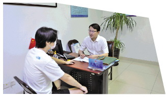 邢輝(右)在常州公共法律服務中心接待群眾法律咨詢。