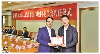邢輝(左)受聘擔任新北區(qū)政府法律顧問。