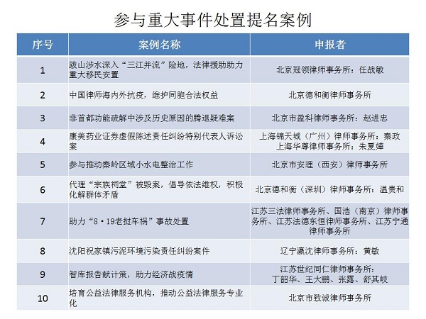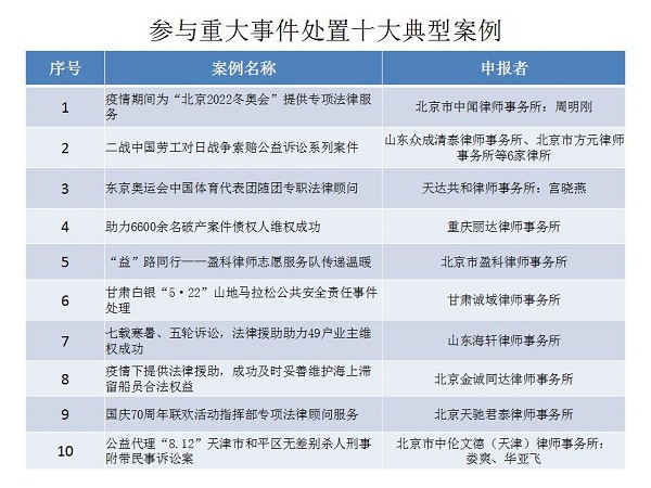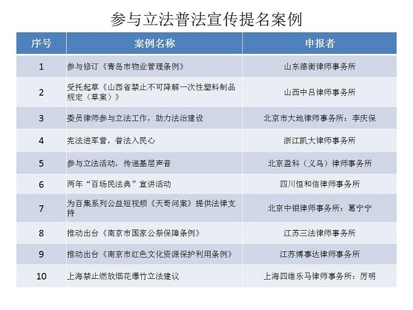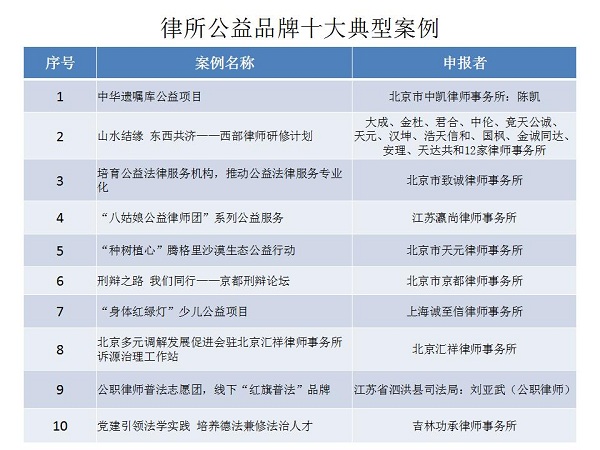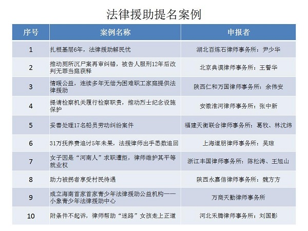 結(jié)合公眾投票和專家評審,十大律師公益類別最終產(chǎn)生了一百個典型案例,一百個提名案例。