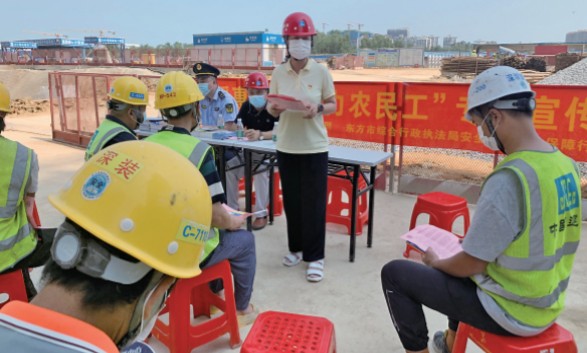 這樣的討薪案,丁明已經處理了很多。在安徽,她長期負責牽頭組織全省各級法律援助機構開展農民工維權專項行動,深知從源頭預防的重要性。于是到東方市后,她積極開展“民法典進工地”等法律宣傳活動,普及民法典中的相關法律知識,編印了勞動法律知識問答宣傳手冊,引導農民工學法守法、依法維權。