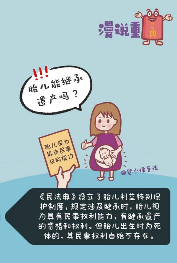 《中華人民共和國(guó)民法典》第十六條 【胎兒利益保護(hù)】涉及遺產(chǎn)繼承、接受贈(zèng)與等胎兒利益保護(hù)的,胎兒視為具有民事權(quán)利能力。但是,胎兒娩出時(shí)為死體的,其民事權(quán)利能力自始不存在。