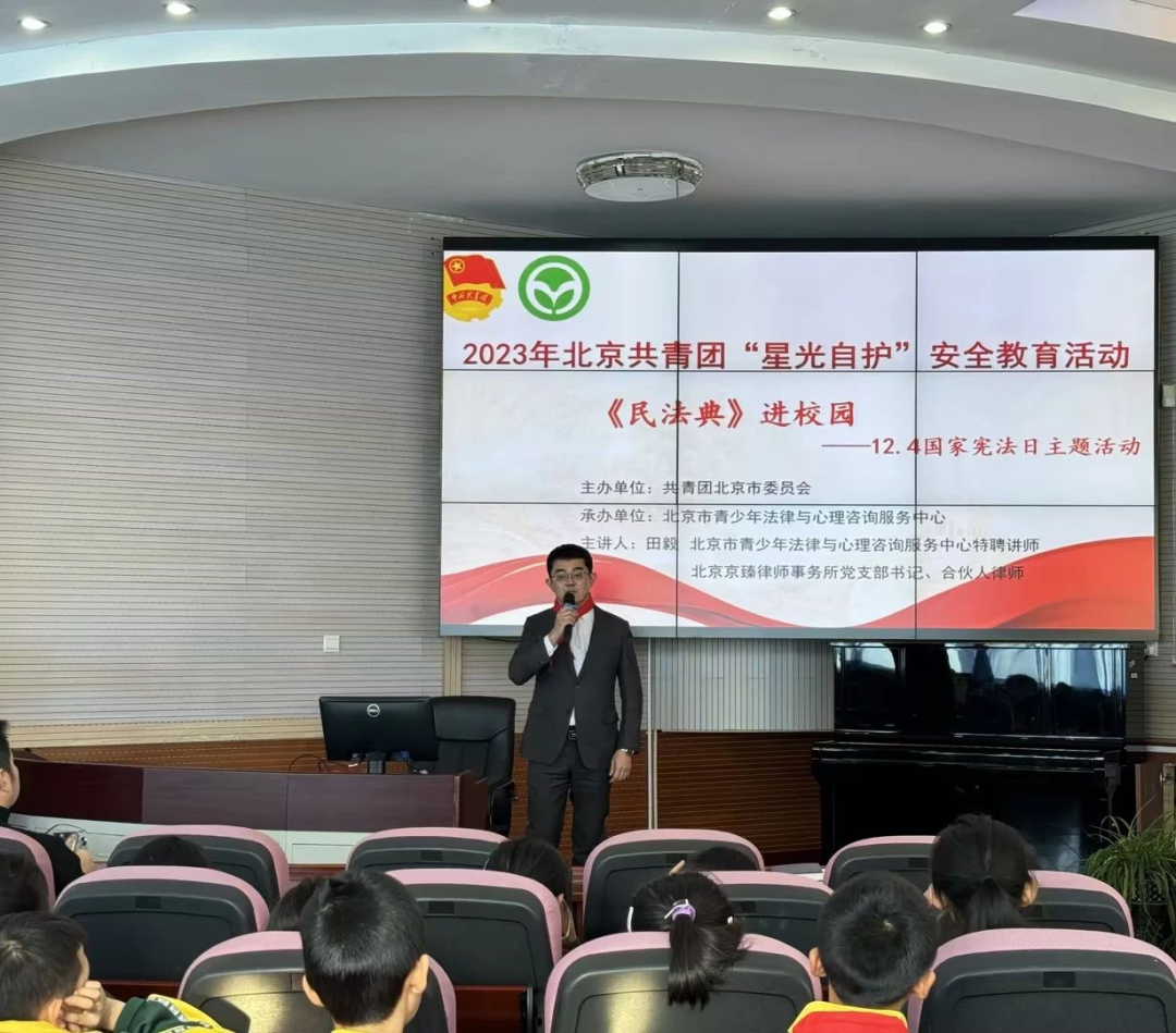 近日,北京京臻律師事務(wù)所律師田毅作為北京市西城區(qū)律師協(xié)會宣傳與表彰工作委員會委員、北京市青少年法律與心理咨詢服務(wù)中心特聘講師走進(jìn)育新實驗小學(xué),為同學(xué)們開展“民法典進(jìn)校園”主題講座,引導(dǎo)學(xué)生自覺樹立尊法學(xué)法守法用法的意識,做知法守法的好少年。