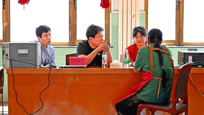 8月6日,北京市懷柔區(qū)司法局工作人員與律師一起走進(jìn)琉璃廟鎮(zhèn),為受災(zāi)群眾提供法律咨詢服務(wù)。法治日報(bào)全媒體記者 楊晉峰 攝