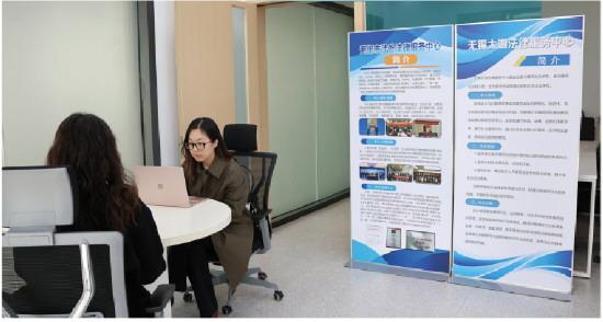 2025年12月17日,江蘇省無(wú)錫市涉外律師正在市涉外法律服務(wù)中心駐點(diǎn)值班。 孫夢(mèng)瀅 攝