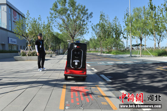 更令人驚嘆的是園區(qū)內(nèi)各式各樣的“黑科技”。首先,行駛在園區(qū)道路上的是正在進(jìn)行測(cè)試的新能源無(wú)人汽車,車輛在道路上自主行駛,平穩(wěn)安全,秩序井然。除此之外,還有無(wú)人配送機(jī)器人、無(wú)人售賣車等。