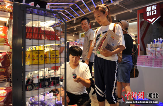 顧客在無(wú)人超市內(nèi)選購(gòu)商品。