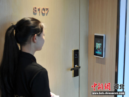 在新區(qū)第一家智慧酒店中,入住酒店的客人通過(guò)一臺(tái)大小類似于ATM機(jī)的“智慧前臺(tái)”機(jī)器,只要把身份證放到人臉識(shí)別自證系統(tǒng)中,臉部對(duì)準(zhǔn)攝像頭,不到幾秒鐘的時(shí)間系統(tǒng)就能快速準(zhǔn)確地識(shí)別出是否人證合一,自助選房,為游客辦理好入駐手續(xù),節(jié)省了大量時(shí)間。