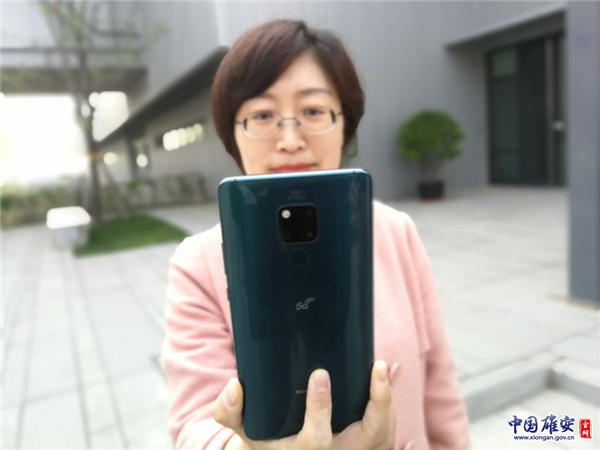 雄安移動工作人員使用5G手機撥打電話。中國雄安官網(wǎng)記者孫丹 攝
