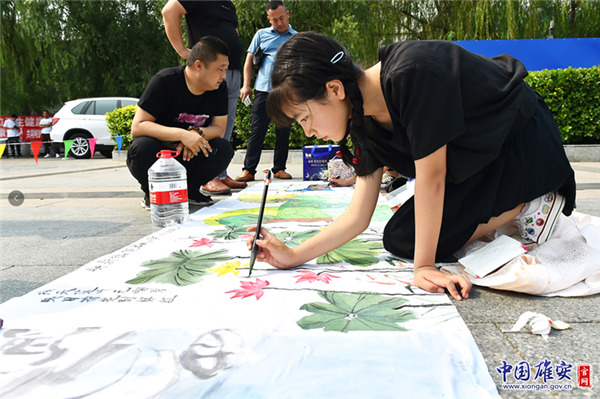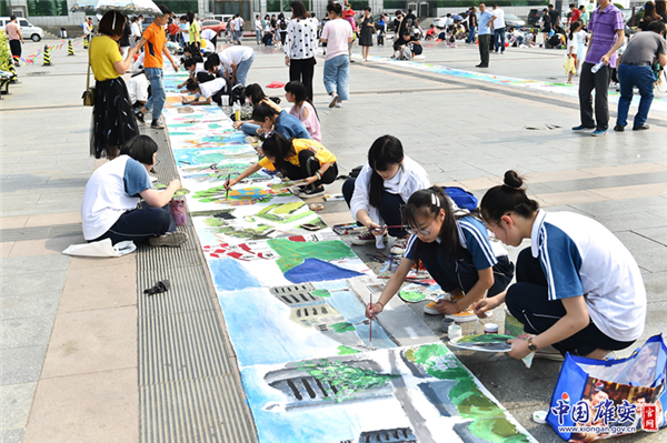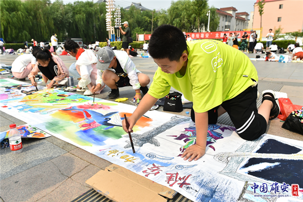 “百米長(zhǎng)卷繪雄安”主題繪畫(huà)活動(dòng)現(xiàn)場(chǎng)。中國(guó)雄安官網(wǎng)發(fā) 劉向陽(yáng) 攝