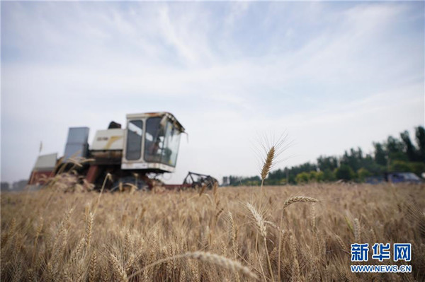 6月13日,雄安新區(qū)大王鎮(zhèn)小王村村民在收獲小麥。 近日,雄安新區(qū)小麥陸續(xù)成熟,當(dāng)?shù)卮迕駬屪マr(nóng)時(shí)進(jìn)行收獲。 新華社記者 邢廣利 攝