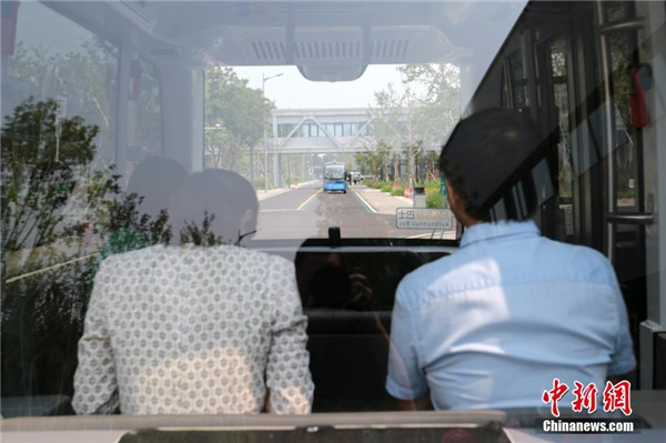 6月26日,無人駕駛微循環(huán)電動巴士在雄安市民服務(wù)中心搭載乘客出行。雄安市民服務(wù)中心是雄安新區(qū)成立后啟動的第一個城市建筑項目,是新區(qū)功能定位和發(fā)展理念的率先呈現(xiàn),主要用于服務(wù)市民,行政及先期入駐新區(qū)的企業(yè)提供臨時辦公、生活場所,同時滿足新區(qū)規(guī)劃建設(shè)成果展示、政務(wù)服務(wù)、會議接待和未來低碳智慧城市生活體驗等功能需要。 中新社記者 張遠(yuǎn) 攝