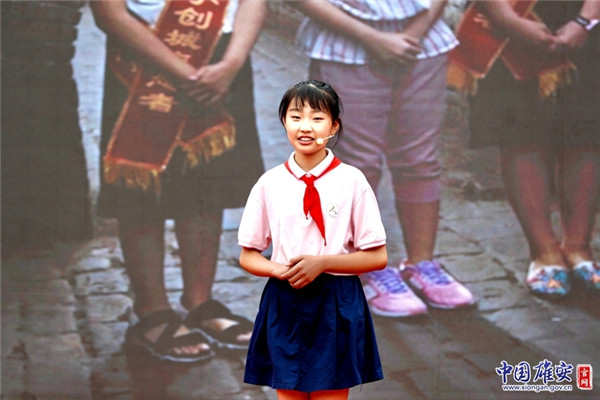 北京市海淀區(qū)中關(guān)村第三小學(xué)雄安校區(qū)學(xué)生楊寧欣的宣講題目是《我與雄安共成長(zhǎng)》。中國(guó)雄安官網(wǎng)記者馬夢(mèng)迪 攝