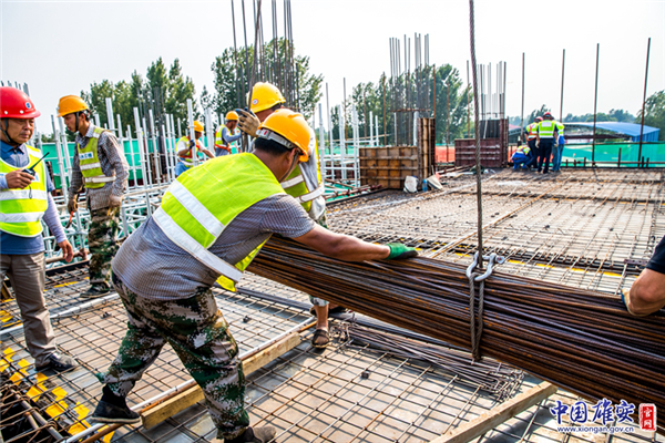 白洋淀引黃大樹劉泵站工程施工現(xiàn)場,新區(qū)建設者冒著酷暑炎熱,辛苦付出,確保按時完成工程任務。中國雄安官網記者馬夢迪 攝